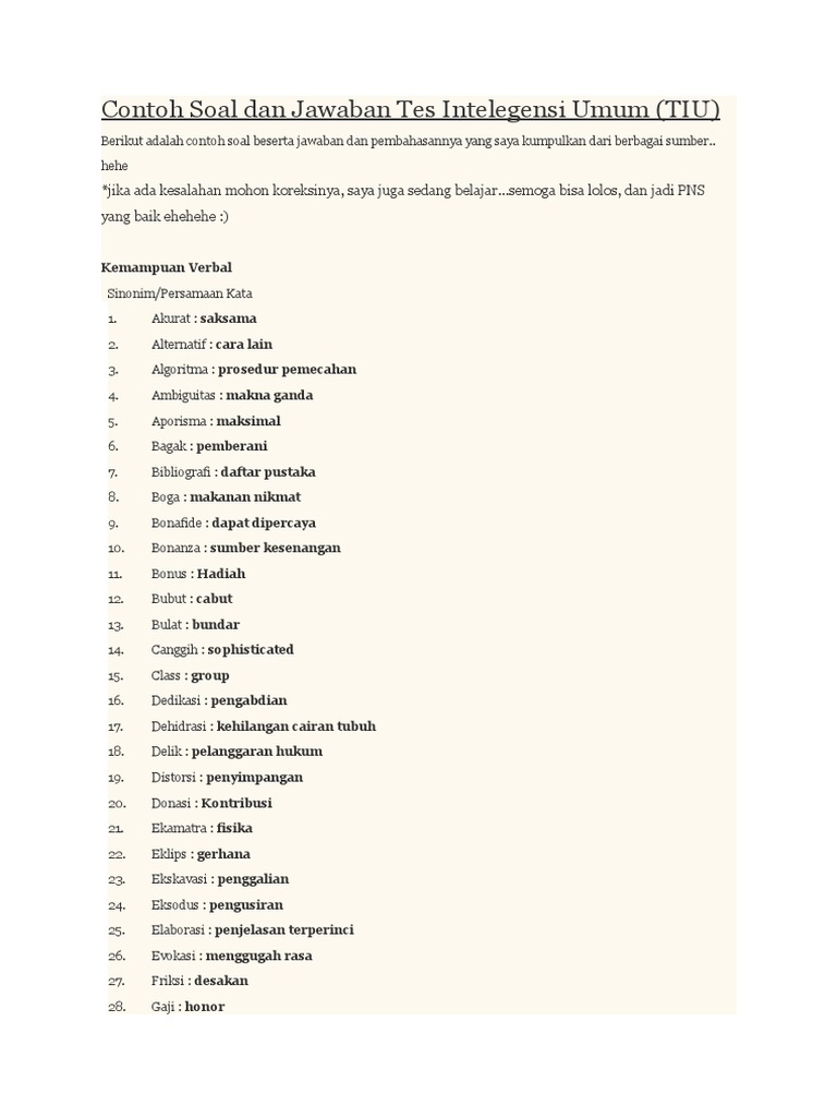 Tes kemampuan bidang (tkb) bidang pendidikan 1. Menurut jadwal tes skd cpns 2019 akan dilaksanakan tanggal kami tidak hanya memberikan contoh soal cpns dan kunci jawabannya saja, namun juga pembahasannya, serta bagaimana cara menjawab. Soal tkd tes intelegensi umum ( tiu ) download. Sekian dari penjelasan tentang contoh soal tiu cpns 2019 yang dapat diberikan semoga kedepannya contoh soal tiu cpns ini akan dilengkapi dengan kunci jawabannya dan pembahasannya, semoga bermanfaat… Seleksi kompetensi dasar tes intelegensia umum atau tiu digunakan untuk menilai kemampuan verbal peserta ujian skd cpns, yakni untuk melihat dan mengukur kemampuan.