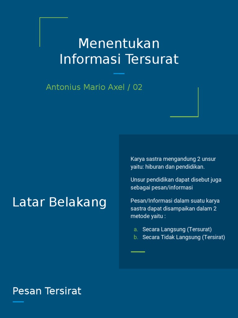 Standar sni untuk amdk gelas boleh melebihi asal batas waktu contoh soal lainnya: Apa makna tersirat dan tersurat? Informasi tersirat adalah informasi secar tidak langsung dinyatakan dalam teks. Sobat penulis cilik, secara sederhana arti kata tersurat adalah sesuatu yang tertulis. Pada sebuah teks menganwrdung informasi baik tersurat maupun tersirat.